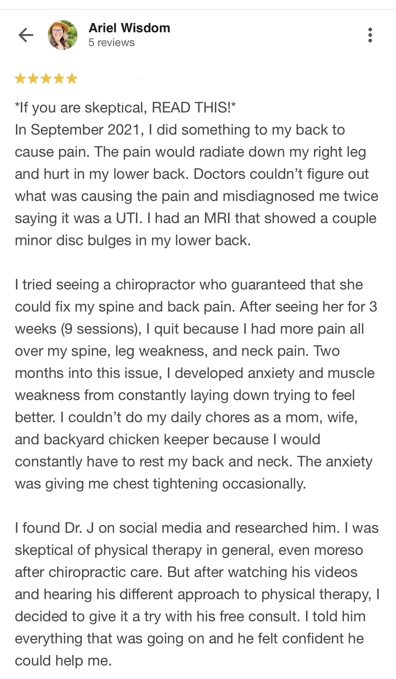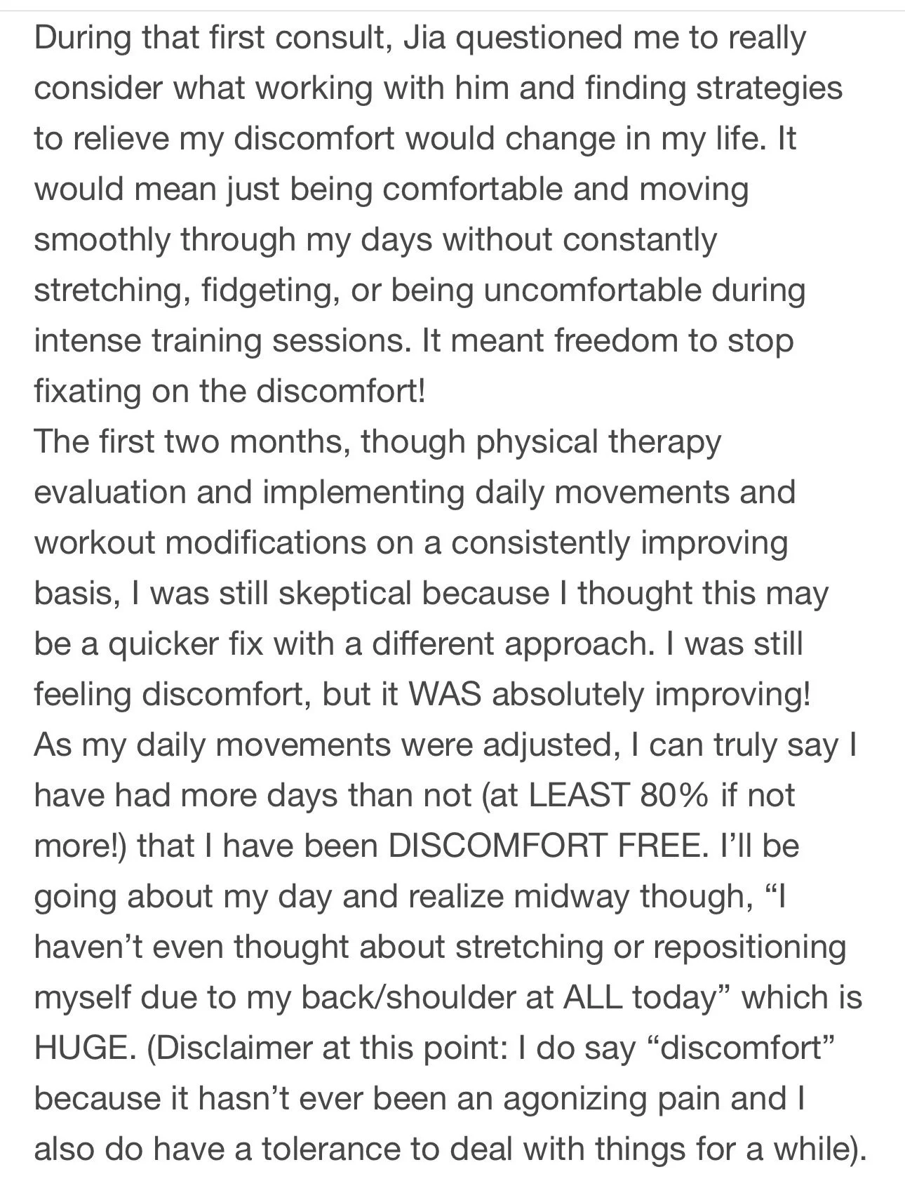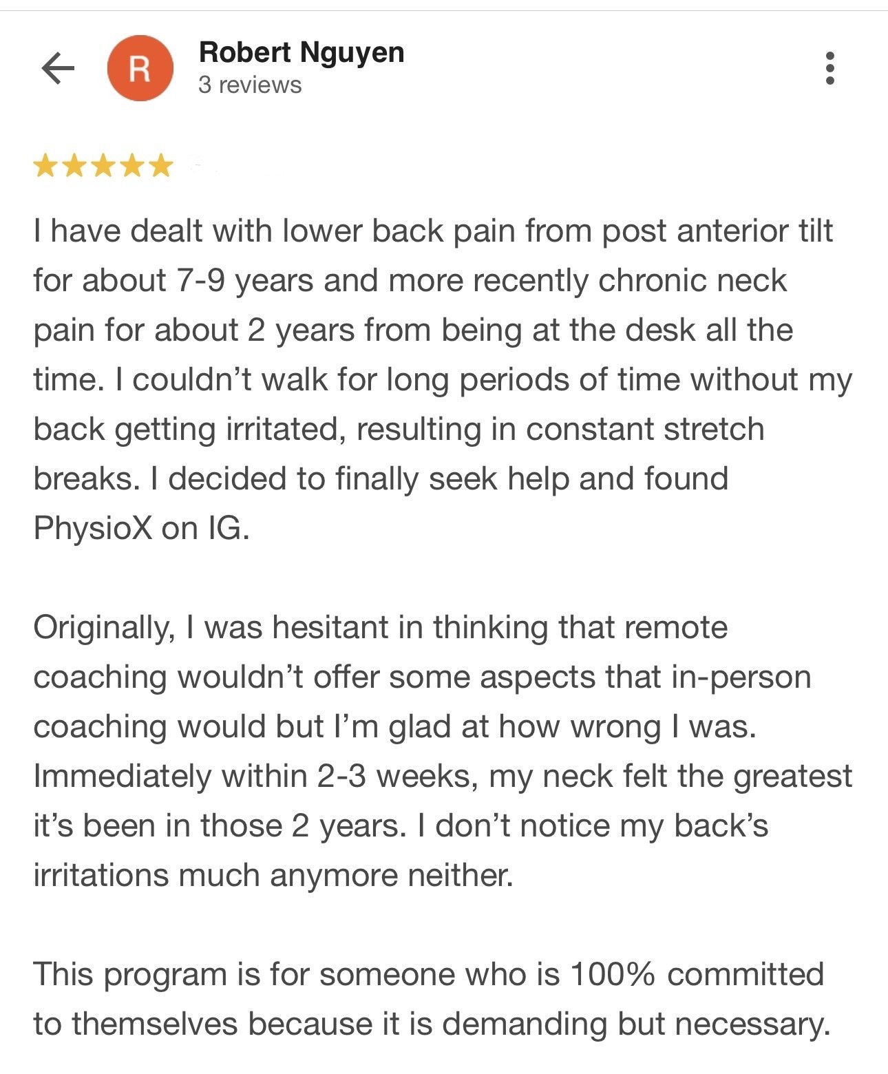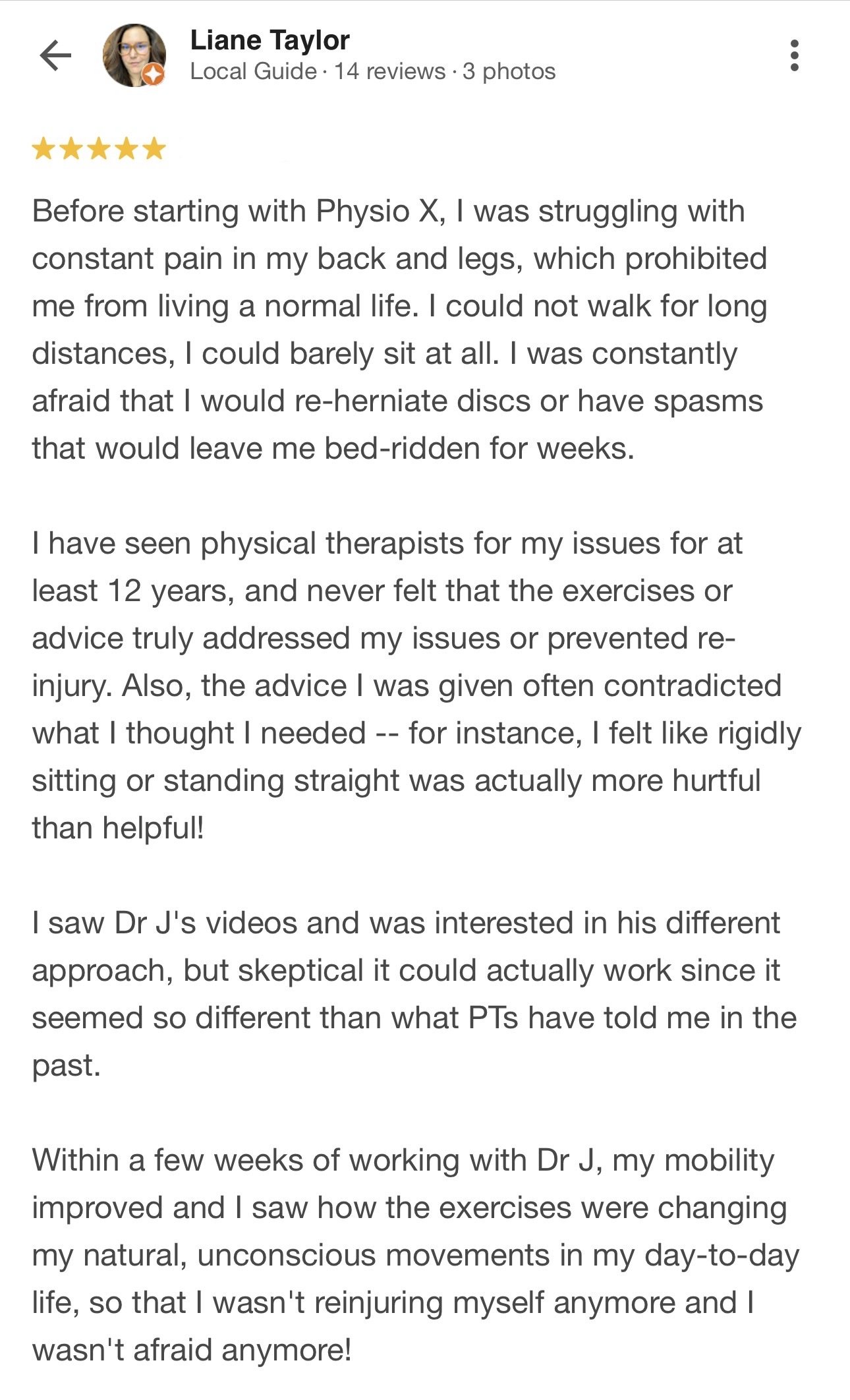 The majority of the results you see in our Google reviews come from clients who committed to our twelve week program. That time frame allows us to not only create change, but reinforce it until new movement patterns become consistent and reliable.