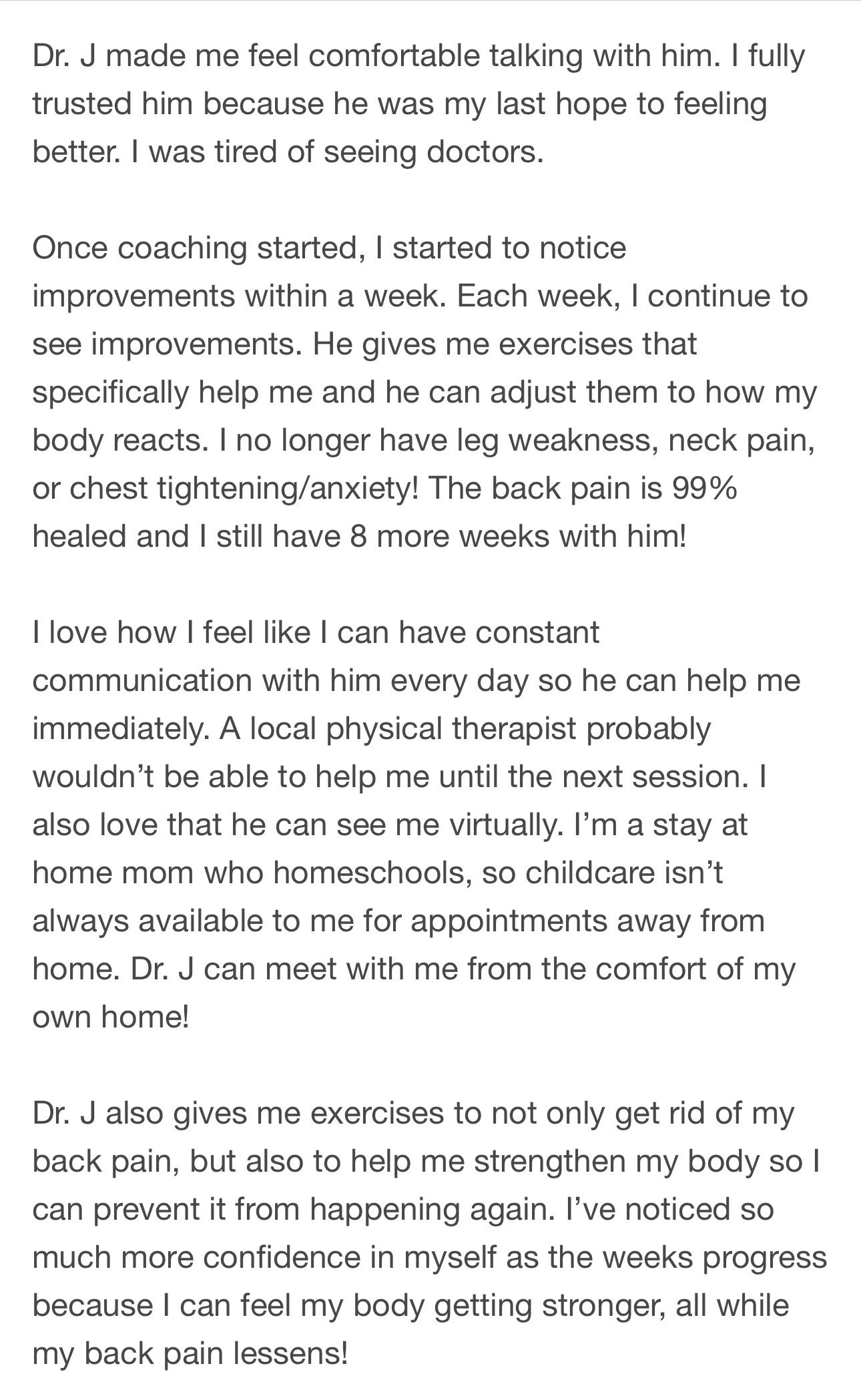 Interested in working with us remotely, but unsure if we can help with your specific problem? We get this a lot! This is why we offer a free call directly with one of our physical therapists to understand your situation better and get your questions answered! Simply fill out this form and we will get back to you within 24 business hours to get you scheduled!